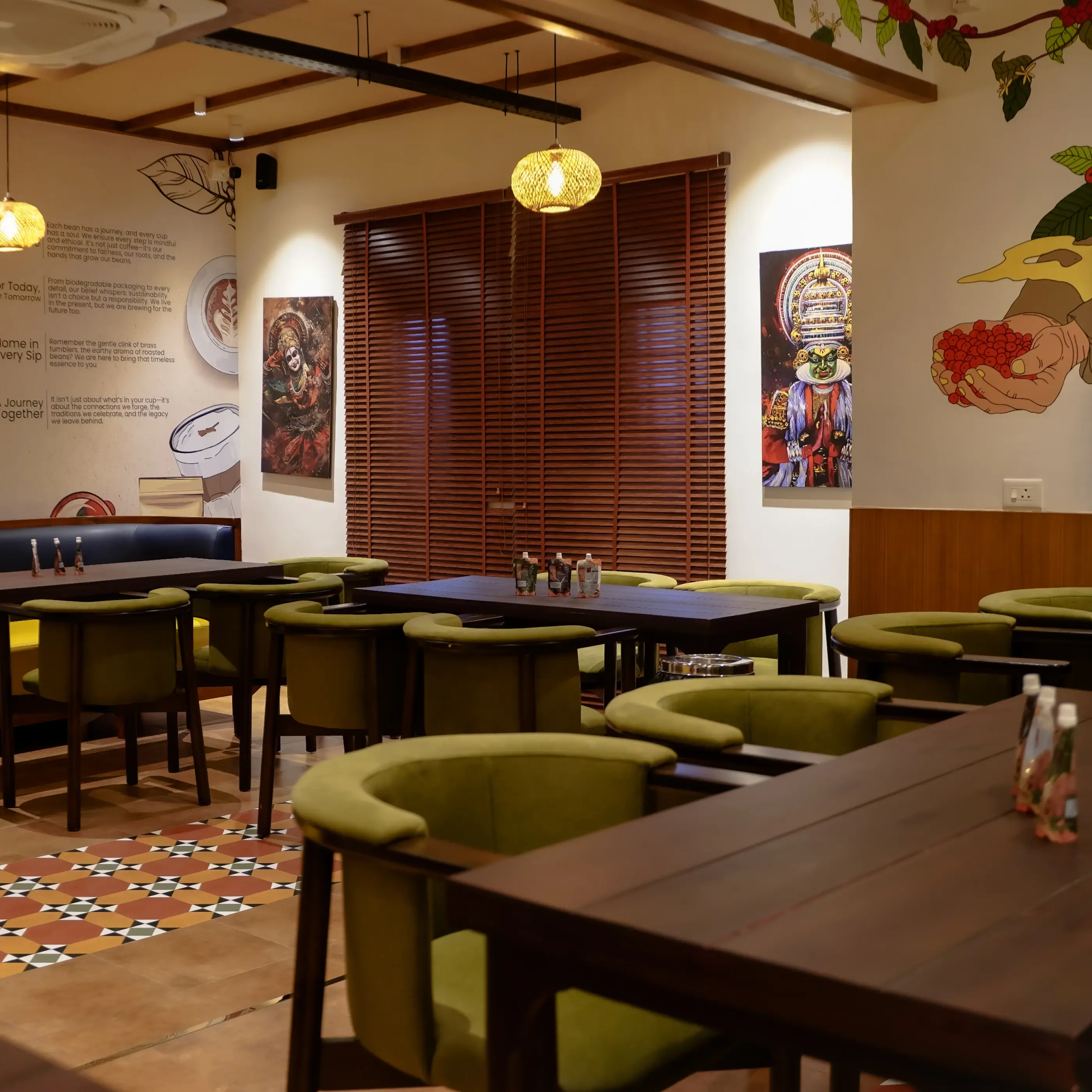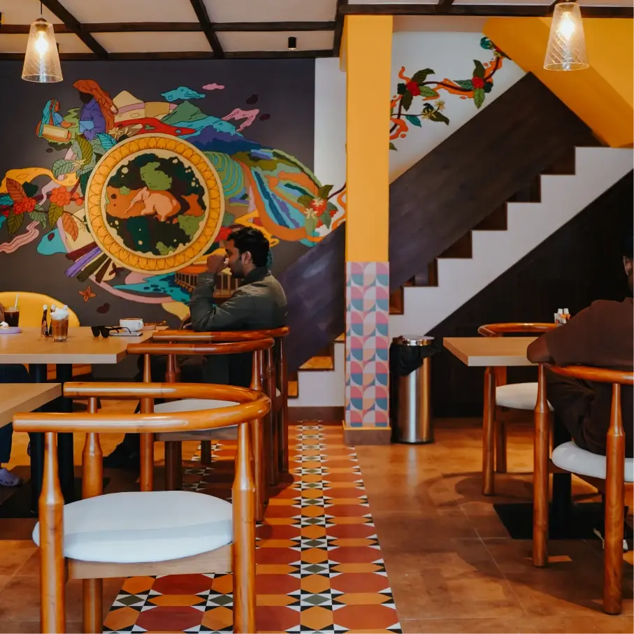 A design language inspired by Indian café culture, warmth, and familiarity - translating brand emotion into a tangible spatial experience.