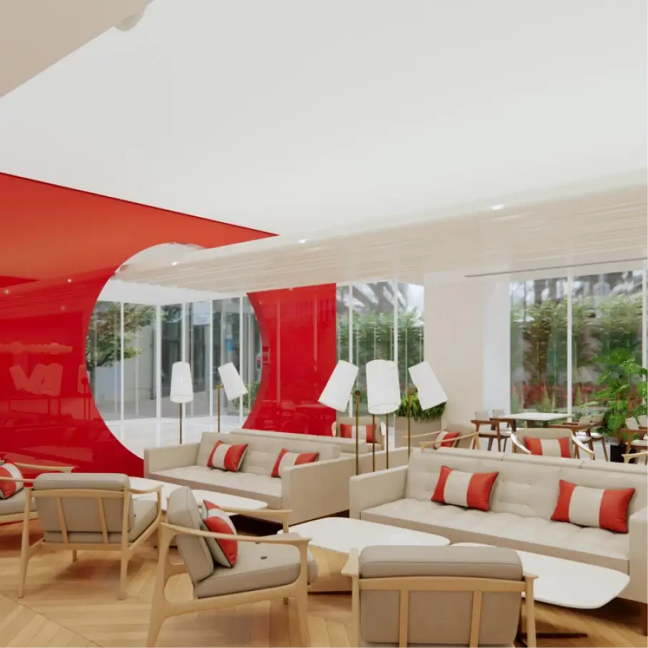 - Planned seating and circulation for operational efficiency